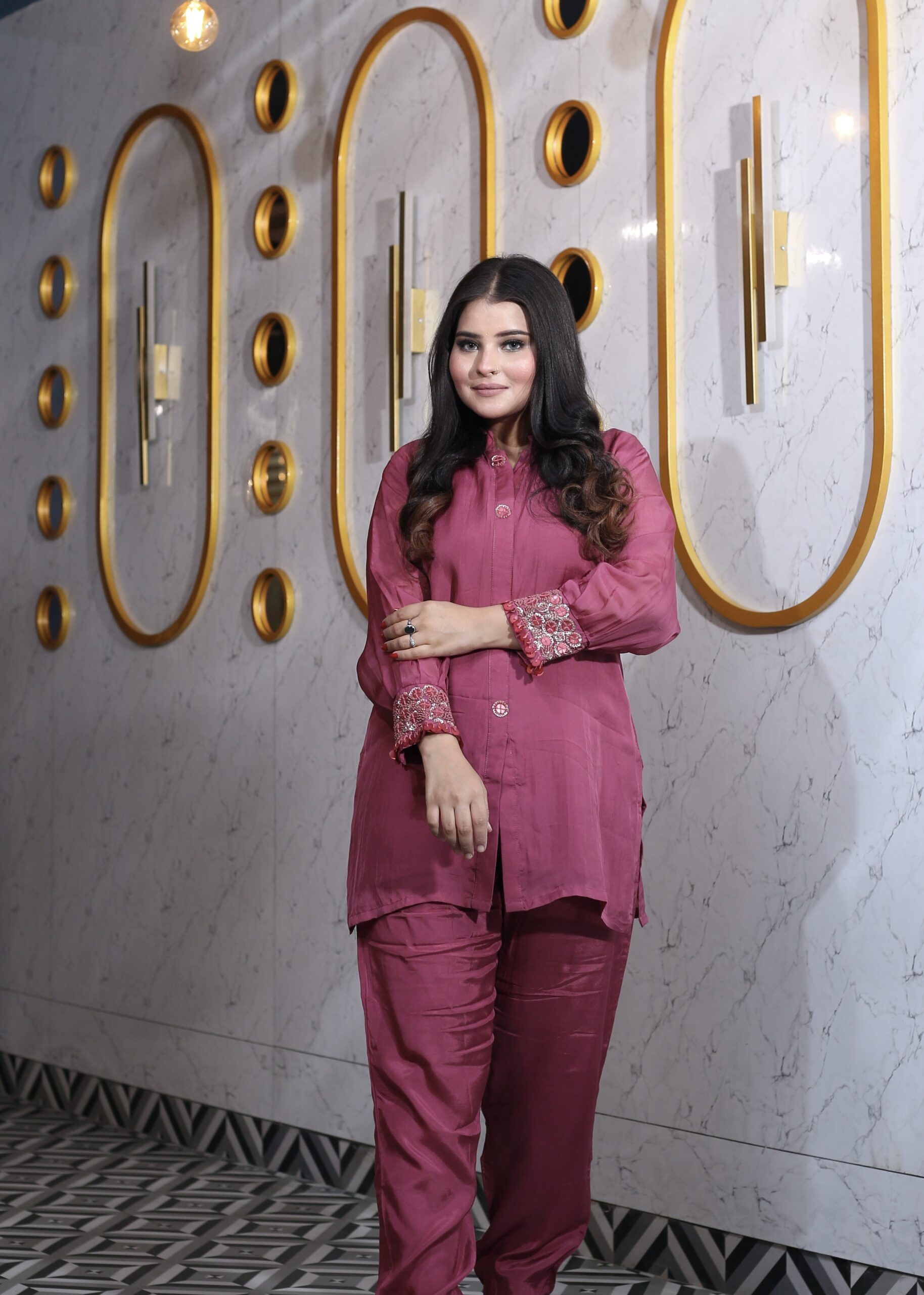 Infuse a touch of grace into your wardrobe with our Pink Pure Georgette Coord Set, featuring delicate work on the hand cuffs. The pure georgette fabric drapes elegantly, while the intricate detailing on the hand cuffs adds a subtle and stylish touch. Perfect for various occasions, this coordinated set combines the softness of pure georgette with thoughtful craftsmanship. Elevate your look with the feminine charm of our Pink Pure Georgette Coord Set, where the adorned hand cuffs provide a refined and distinctive flair to your ensemble.