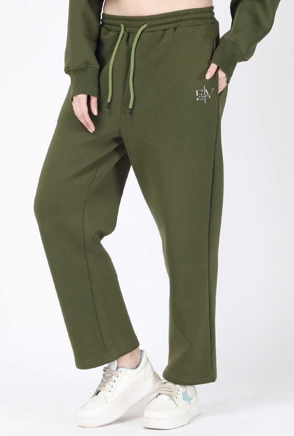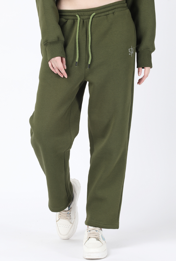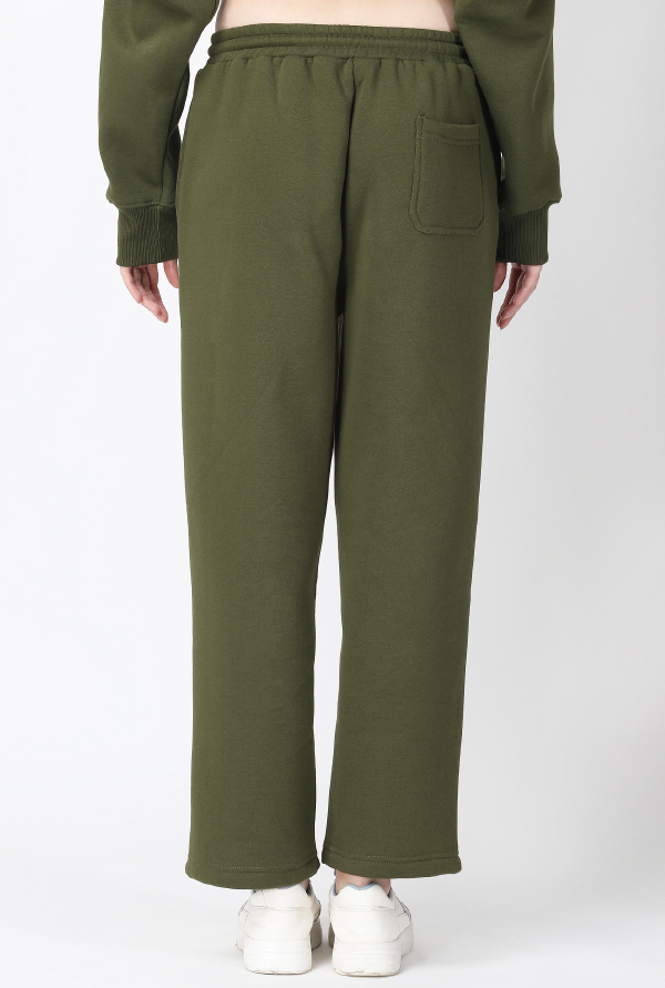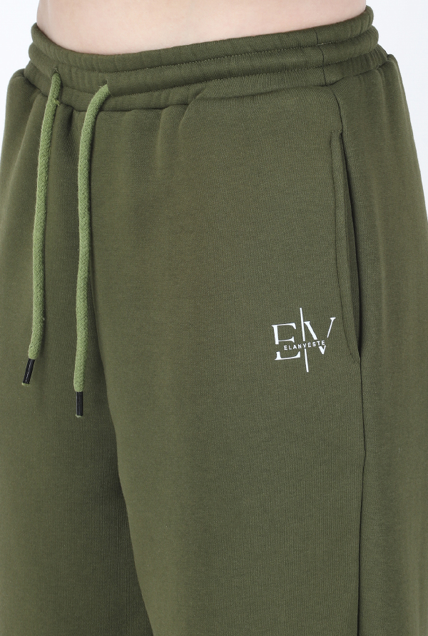 Embrace winter in style with these olive green lower pants, meticulously crafted from 340gsm cotton fleece.
